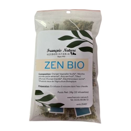 Tisane Zen Stress & nervosité François Nature 4/5 Nos Tisanes Gourmandes Tisane Zen tisane apaisante, relaxante Existe en sachet de 100 g ou 200 g Douce...
