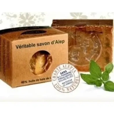 Savon Alep 5 p.c d'huile de baie de laurier Peaux sensibles Alepia 17,50€/kilo 5/5 Savons Alep Savon Alep 5 p.c d'huile de baie de laurier Authentique savon d 'alep 200 g. - Huile d'olive saponifiée (sodium olivate), Huile de...