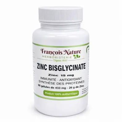 Zinc Bisglycinate 15 mg comprimés Ongles et cheveux Vitall + 5/5 Capsules & comprimés Zinc Bisglycinate 15 mg comprimés stress oxydatif Le Zinc contribue à : – protéger les cellules contre...